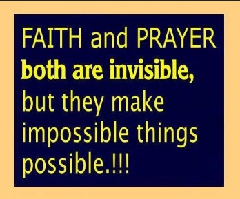 One of the best quotes I have seen about faith and prayer is this, “Faith and Prayer are both invisible but they make impossible things possible.” That is the truth. Both of these are the things that will change your life if you let it. Another great quote is “Prayer is the key to Heaven but Faith unlocks the Door”. These two things can carry you though any situation. They bring hope even in the darkest places.